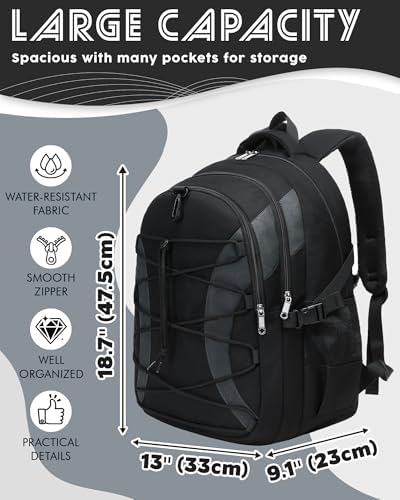 BLUEFAIRY Middle High School Backpack for Teen Boys Girls Large College Bookbag with Laptop Sleeve Back to School Book Bags Mochilas Escolares para Niños Niñas Adolescentes (Black\/Dark Gray, Solid)