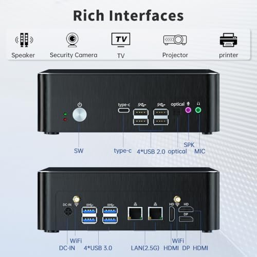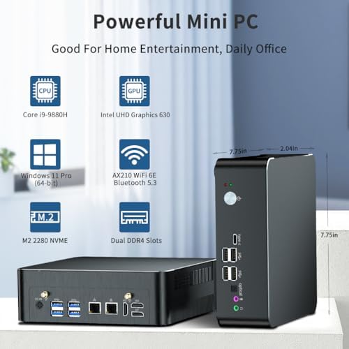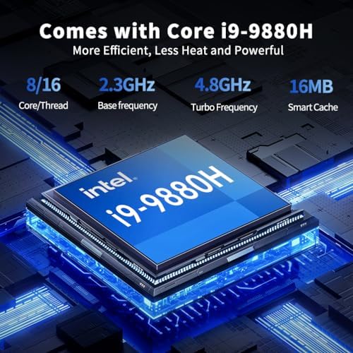 msecore Mini PC i9, 64GB RAM 1T SSD Desktop Computer with Core i9-9880H (Upto 4.8GHz), 2*HDMI, 1*DP, Triple Display, 4K@60Hz, Dual 2.5G LAN, Optical, USB-C, Wi-Fi 6E, Bluetooth 5.3, Windows 11 Pro