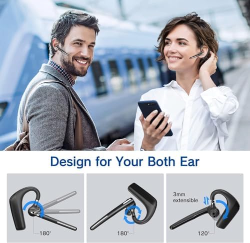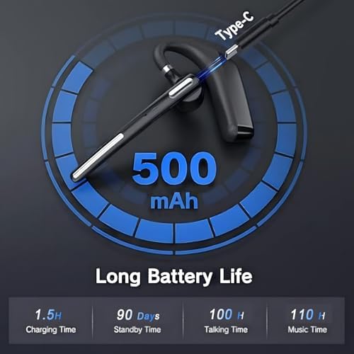Bluetooth Headset V5.4, Wireless Bluetooth Earpiece with CVC8.0 Dual Mic Noise Cancelling, 110 Hours Talktime Hands-Free Headphones for Cell Phone, iPhone and Android, for Trucker and Business Use