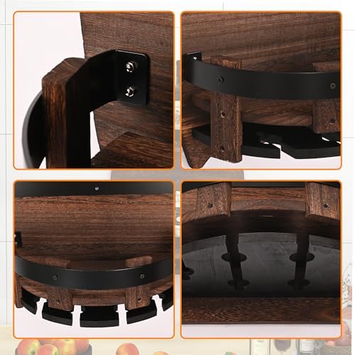 Gtouse Wooden Wine Rack Barrel,Vintage Wine Rack Wall Mounted Champagne Bottle Holder, Gift for Wine Lover,Drinks Cabinet Shelf for Wein, Whiskey, Beer
