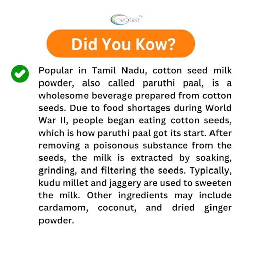 Neotea Cotton Seed Milk Powder 250GM (10.58 OZ) Paruthi Paal 100% Natural, Pure & Healthy Drink Plant-Based, Gluten-Free Rich in Nutrients Perfect for Daily Consumption