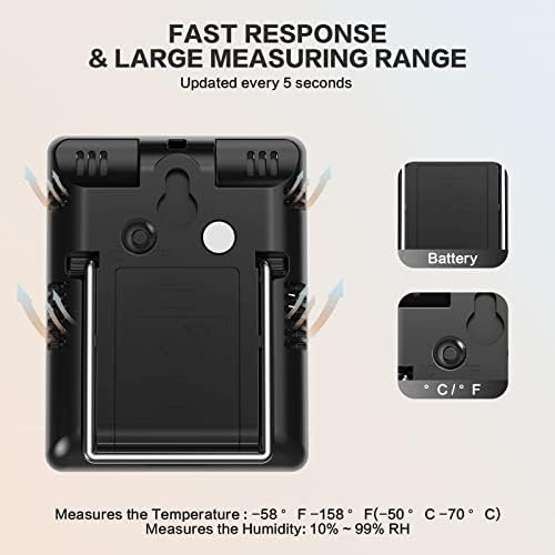 DOQAUS Digital Hygrometer Indoor Thermometer Humidity Meter Room Thermometer with 5s Fast Refresh Accurate Temperature Humidity Monitor for Home, Bedroom, Baby Room, Office, Greenhouse, Cellar (Black)