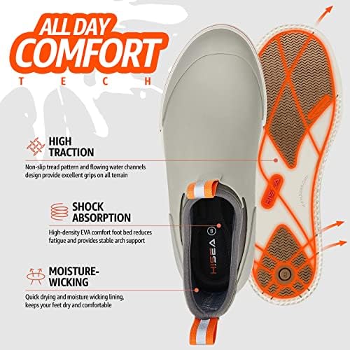 HISEA Men's Deck Rain Boots Saltwater Fishing Booties Waterproof Ankle Rain Boots with High Traction