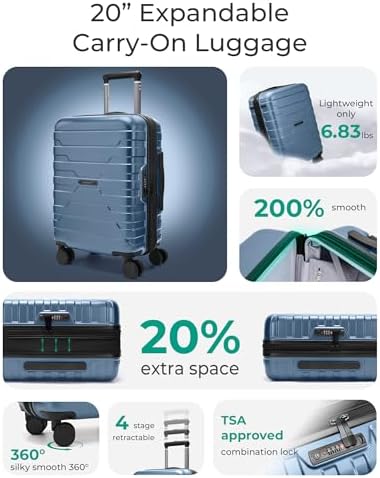 BAGSMART Carry On Luggage 22x14x9 Airline Approved with TSA Lock,20 Inch Lightweight Luggage with Spinner Wheels,100% PC Hard Shell Carry On Suitcases for Men Women,Royal Blue