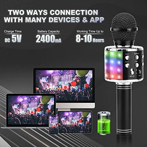 BlueFire 4 in 1 Karaoke Wireless Microphone with LED Lights, Portable Microphone for Kids, Great Gifts Toys for Kids, Girls, Boys and Adults (Black)