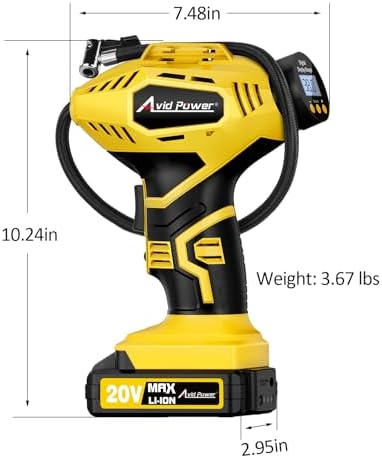 AVID POWER Cordless Tire Inflator Portable Air Compressor, 20V Rechargeable Battery Powered Car Tire Pump w\/ 12V DC Adapter, Digital Pressure Gauge, Air Pump for Car, Bike, Motorcycle, Ball