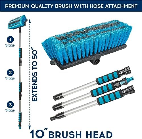 DSV Standard Car Wash Brush with 50'' Long Handle, Car Cleaning Brush with Hose Attachment, Car Brushes for Washing 10'' Soft Bristles for Scratch-Free Cleaning Auto, Truck, Boat, Floor and More