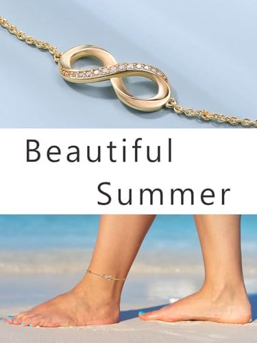 Moissanite Infinity Anklet for Women, Real Authentic 925 Sterling Silver Hypoallergenic, Beautiful Summer Jewelry, Dainty Ankle Bracelet, 8.6-10.6inch (21-26cm) Adjustable