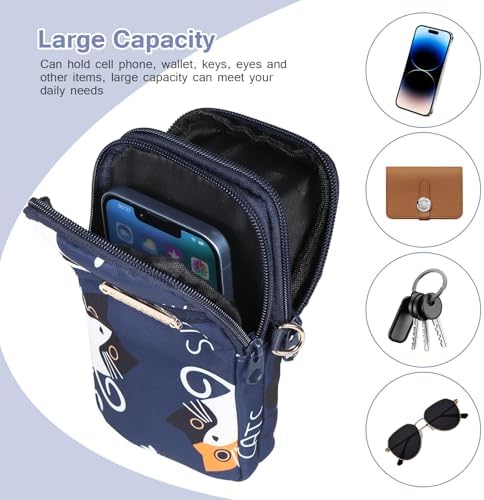 Geestock Cell Phone Purse Small Crossbody Shoulder Holsters Bags with Arm Bands Phone Key Pouch Holder for Running, Walking, Hiking & Biking (Blue Cats)