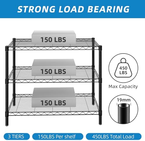 Guan River 3-Shelf Adjustable Metal Shelf Wire Shelving Unit Storage Rack Display Shelf for Office,Kitchen,Bedroom,Bathroom,Laundry,Pantry Basement,Garage(Black,36" L x 14" W x 30" H)