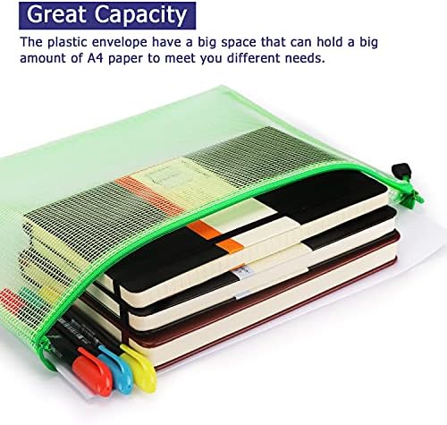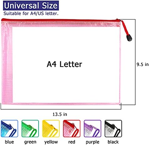 6 Pack Mesh Zipper Pouch Document Bag Waterproof Zip File Folders for School Office Supplies Travel Storage Bags (Colorful)