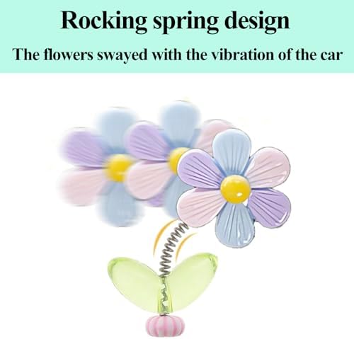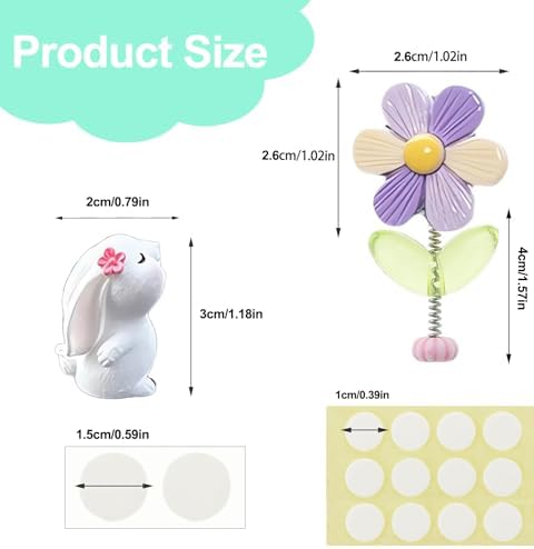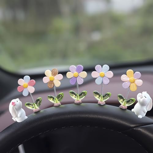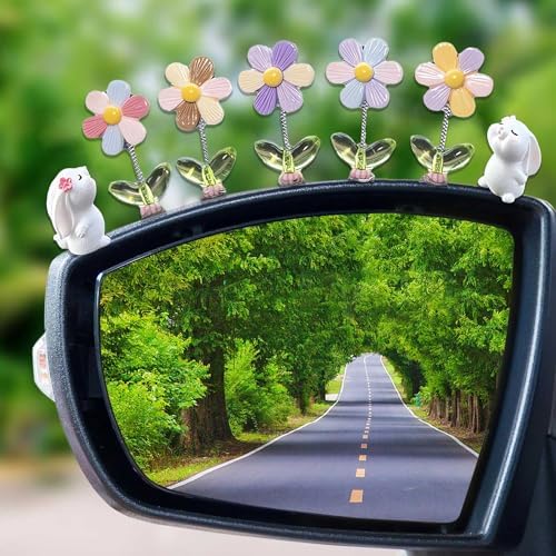 Kurilai 7pcs Cute Car Rearview Mirror Accessories, Funny Bunny Car Ornament, Shaking Spring Sunflower Dashboard Decorations, Interior Decor Christmas Valentine's Day Gifts for Men Women