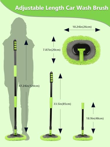 Curved Car Wash Brush Mop 47" with Long Handle Sturdy Metal Pole 3 Grip Points Washing Wand Auto Cleaning Tool Kit Scratch-Free Chenille Microfiber Soft Duster for Cars RV SUV Truck Caravan Van Wi