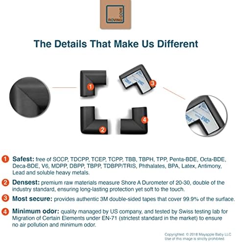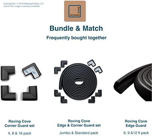 Roving Cove HeftyFit Corner Protector for Baby (16 Large Corners), Heavy-Duty Soft Rubber Foam Furniture Corner Bumper Guards, 3M Adhesive Pre-Taped, Onyx Black