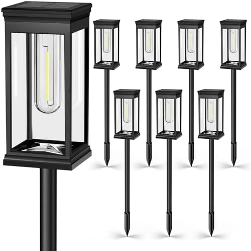 MEYCEMT Modern Solar Pathway Lights Outdoor - 8 Pack, IP65 Waterproof Square Design for Yard Garden Lawn, 14H Runtime Dusk to Dawn Auto, Warm White LED