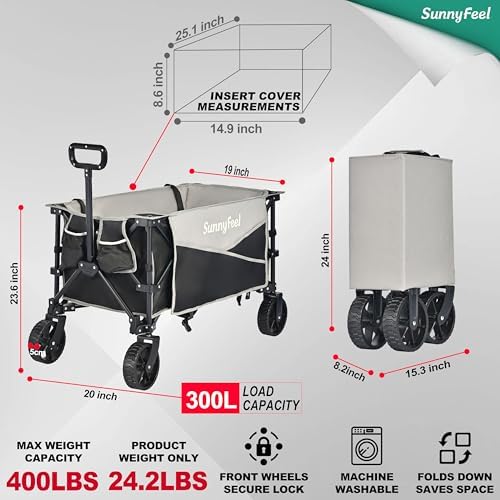 SunnyFeel 重型可折叠户外实用推车 400 磅容量可调节车把,可折叠沙滩轮稳定耐用牛津面料,适合购物花园露营(黑色和灰色)