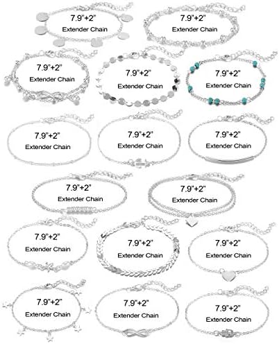 Softones 16 piece women's ankle bracelet with two styles of gold and silver chains, beach anklet bracelet, jewelry anklet set, adjustable size