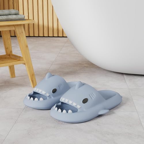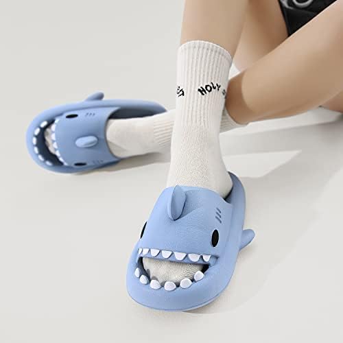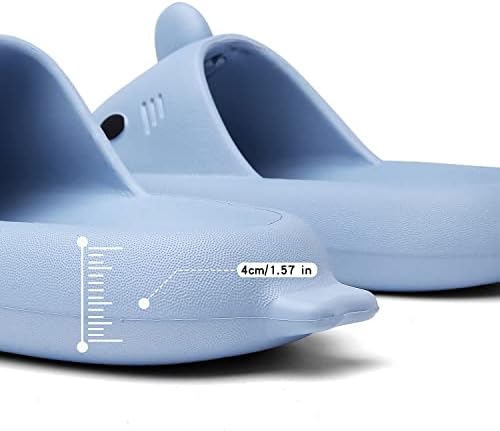 1.6 inch thick sole that provides good support to your feet The deep heel cup footbed fits the curve of the foot pelvic floor and makes walking more comfortable The whole shark slippers are made of high-density premium EVA material which has excellent flexibility and durability, lightweight, soft This shower slippers has a non-slip sole, allowing you to walk smoothly whether in the bathroom or outdoors on a slippery road Trendy cloud slides are perfect for any indoor outdoor activities and all seasons, bathroom, indoor bedroom, living room, swimming pool, outdoor beach, holiday, spa, leisure, public showers, steam rooms etc