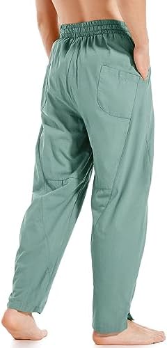AITFINEISM Mens Cotton Linen Pants Elastic Drawstring Waist Lightweight Summer Beach Pants