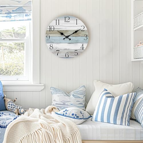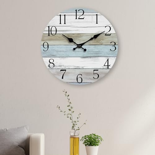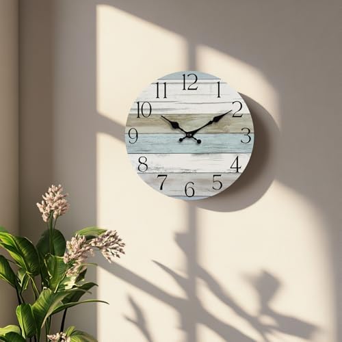 HYLANDA 挂钟,静音无滴答声挂钟电池供电,乡村风格木制时钟装饰厨房、浴室、卧室、客厅,(20.32 厘米)