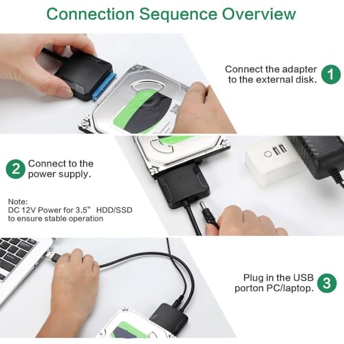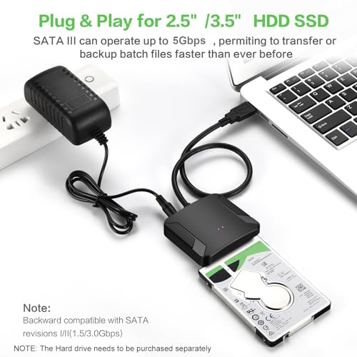 EYOOLD SATA to USB 3.0 Adapter, External Hard Drive Converter Cable for 2.5" 3.5" HDD, SSD with Power Supply