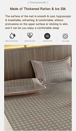 Square Cooling Bedding Mat,Ice Silk Rattan Matting,Foldable Jacquard Mixed Ice Silk \u0026amp; Rattan Mat with Matching Pillowcases, Ice Vine Mat (Blue, King)