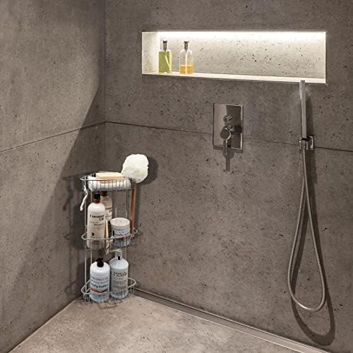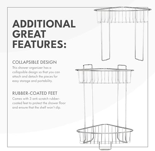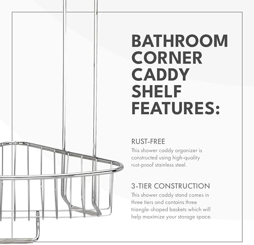 ToiletTree Products Stainless Steel Floor Shower Caddy - Corner Caddy Shelf for Bathroom and Bath Storage - Rust-Proof Caddy for Shampoo, Soap, and More