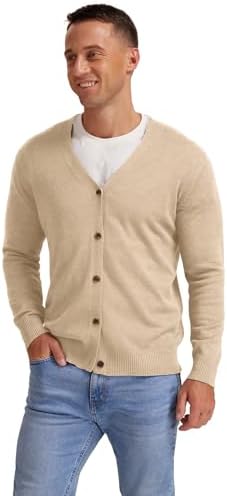 NITAGUT Men's Vintage Striped Long Sleeve Cardigan Sweater with Button V Neck Knitted Sweaters