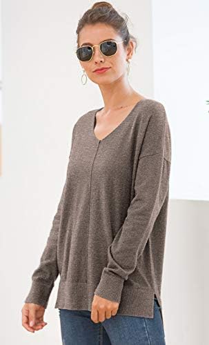 Jouica Women's Casual Lightweight V Neck Batwing Sleeve Knit Top Loose Pullover Sweater