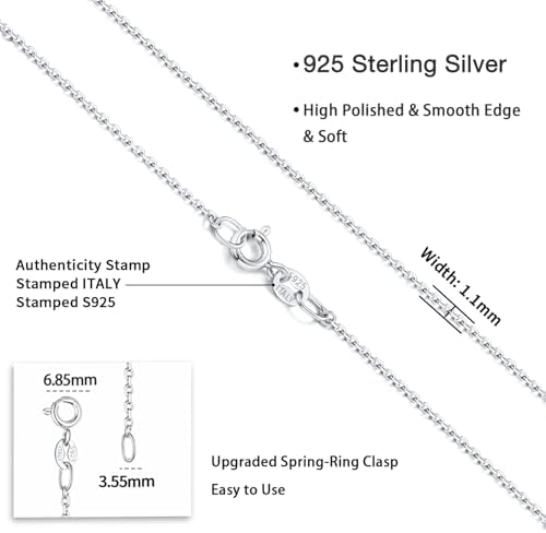 Jewlpire 925 Sterling Silver Chain Necklace Chain for Women 1.1mm Cable Chain Necklace Upgraded Spring-Ring Clasp - Thin & Sturdy - Italian Quality 16\/18\/20\/22\/24 Inch
