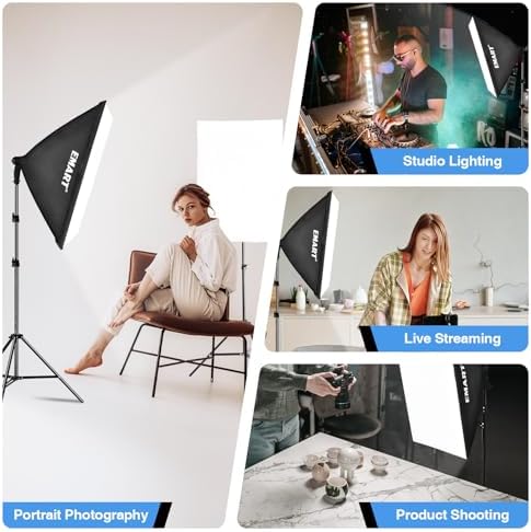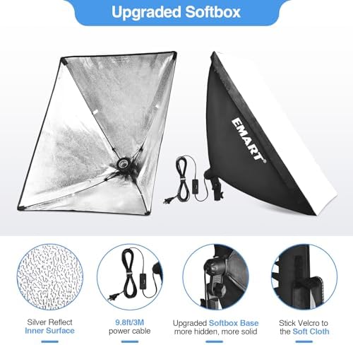 EMART Softbox Photography Lighting Kit, 20"x28" Professional Softbox Lighting Kit with 40W 6500K LED Bulbs, Studio Lights for Photography, Video Recording, Live Streaming, Portraits Shooting,