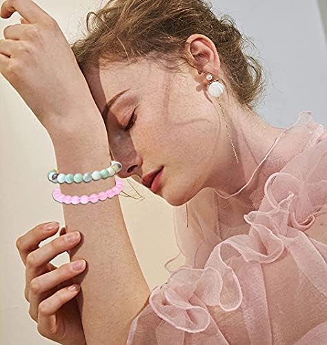 Jewdreamer 12Pcs Natural Stone Beaded Bracelets for Women Men Semi-Precious Gemstones Bracelets Crystal Beaded Bracelet Unisex Adjustable Stretch Bracelets 8MM