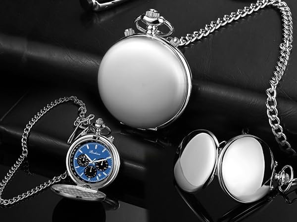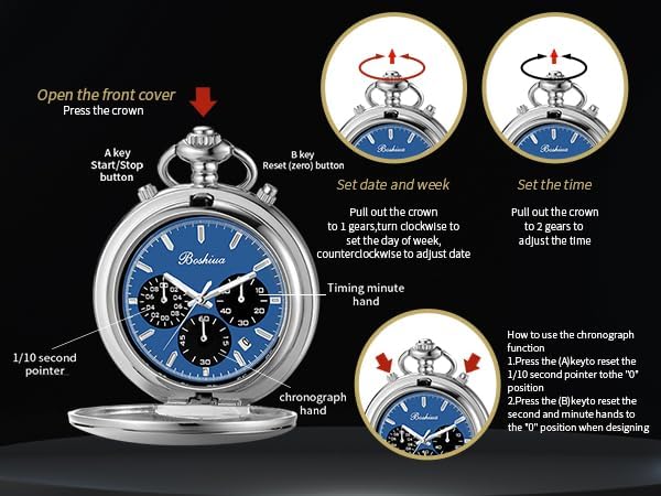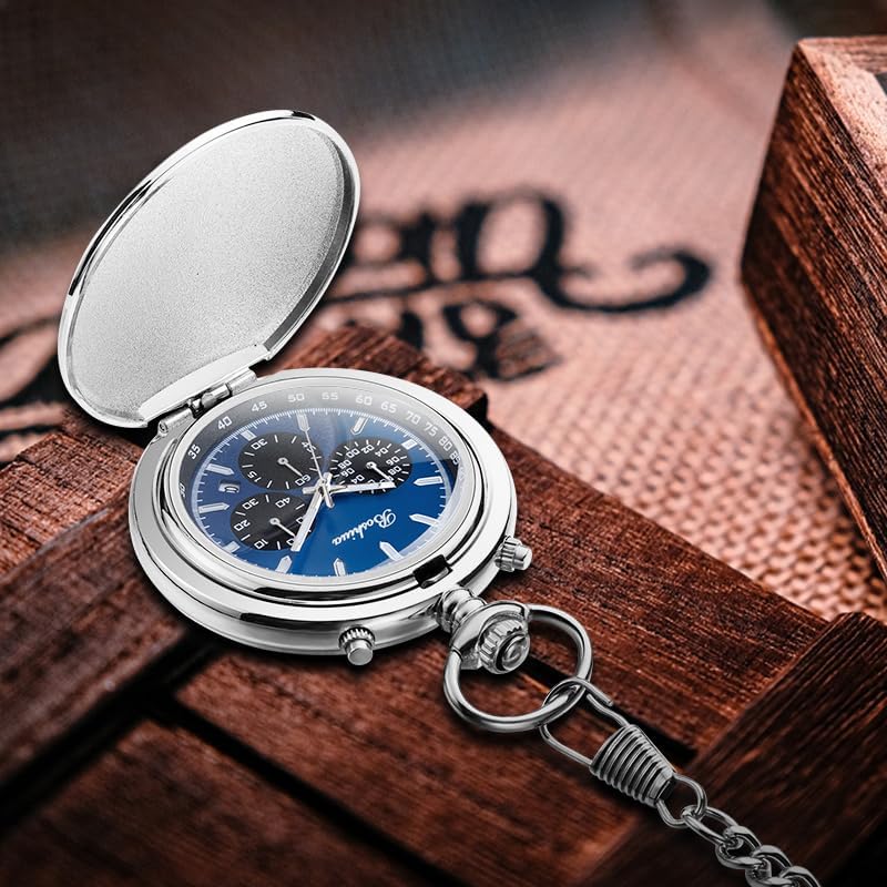 BOSHIYA Multifunctional Stopwatch Calendar Silver Gold Black Pocket Watch with Bracelet