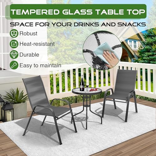SONGBATE Large Patio Bistro Set 36" Table & 2 Chairs Modern Metal Frame with Textilene Fabric