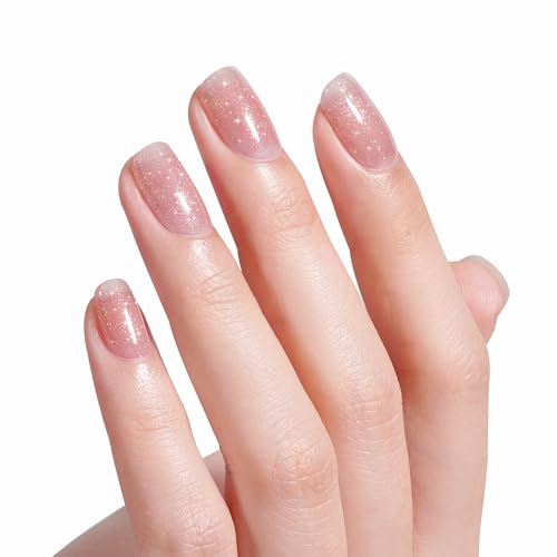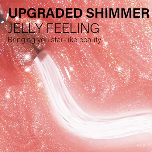 AILLSA Subtle Glitter Gel Nail Polish - Pink Shimmer, Grapefruit Red, Nude, Rainbow Sparkle, Natural Color - Soak Off UV Jelly Gel Polish for Nail Art - 0.51 Oz GB66
