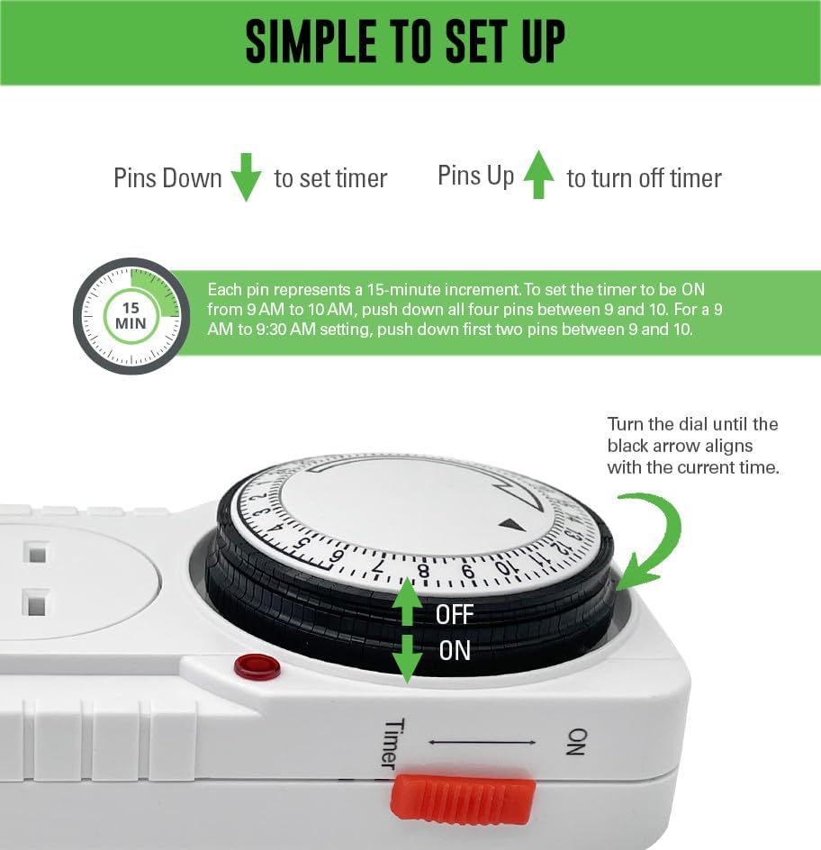 Generic 240V Mechanical Timer with Dual Outlet for Aquarium, Grow Light, Hydroponics, Indoor Lighting, Home Appliances, White, TM-M1\/240
