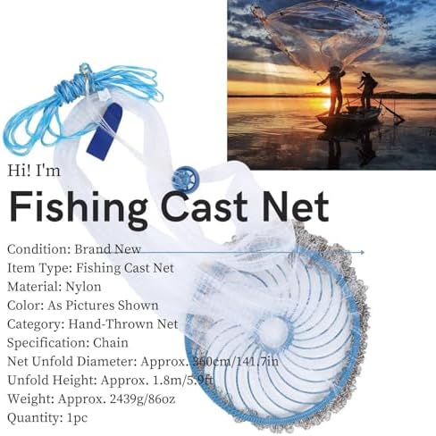 PANGYRNG 360 centimeter hand thrown fishing net, high-strength nylon loop chain, suitable for bait casting fishing equipment \\/39, 12345