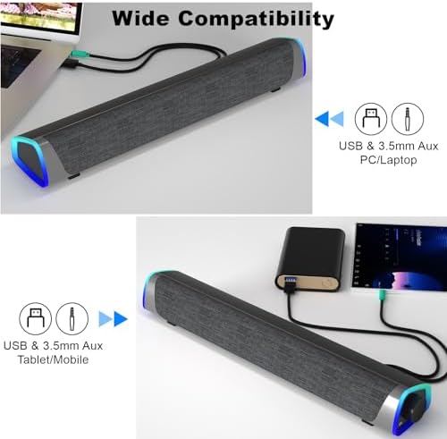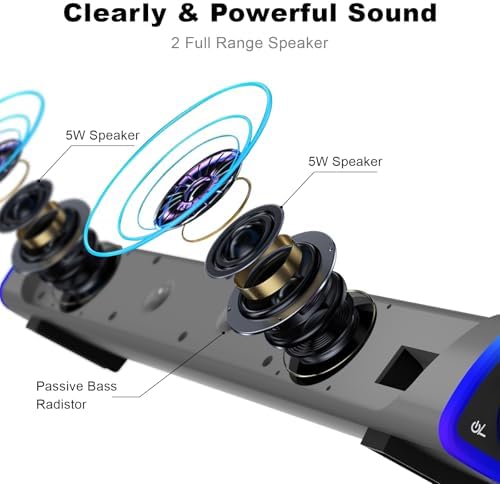 SOULION R30 Computer Speakers, Colorful LED Lights with Switch Button, Surround Sound Portable Computer Sound Bar Speakers for Desktop, Gray