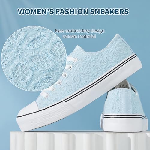 HYPOCRUTE Womens White Tennis Shoes Embroidered Flower Low Top Women Canvas Shoes Women’s Fashion Sneakers