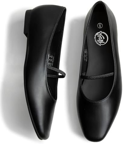 Trary Mary Jane Ballet Flats for Women - Comfortable Closed Toe Shoes With Strap