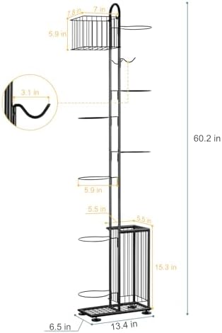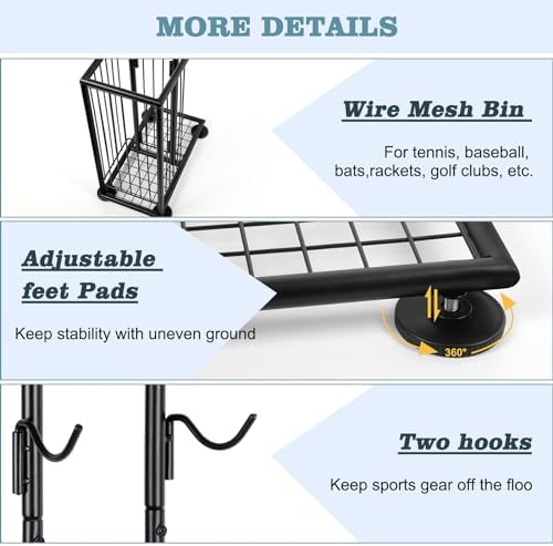 melos 7 Tier Basketball Ball Storage Rack, Freestanding Basketball Holder Garage Ball Storage Sport Organizer Rack with Basket for Volleyball Football Basketball, Indoor\/Outdoor