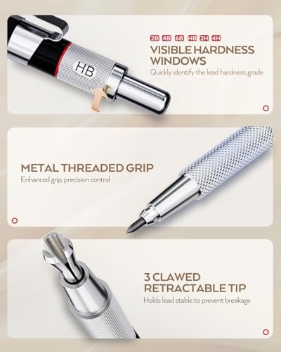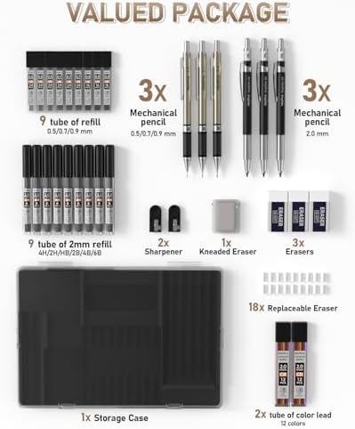 Nicpro 35PCS Art Mechanical Pencil Set, 3 PCS Metal Drafting Pencil 0.5 mm & 0.7 mm & 0.9 mm & 3 PCS 2mm Lead Holder (6B 4B 2B HB 2H 4H Colors) For Sketching Drawing With 20 Tube Lead Refi