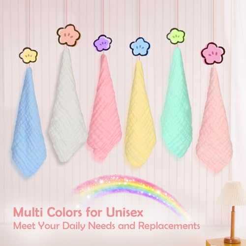 Orighty Muslin Baby Washcloths Pack of 6 - Soft Face Cloths for Newborn, Absorbent Baby Bath and Face Towels, 100% Cotton Babies Wipes, Burp Cloths, Feeding Towels for Babies and Infants - 10 x 10\u20