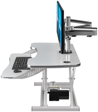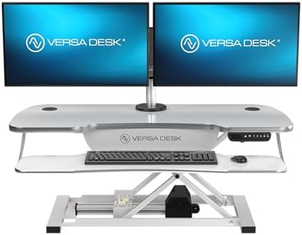 VERSADESK® PowerPro™ Elite 40\u201D x 24" \u2013 App Controlled Electric Standing Desk Converter w\/USB Charging Port. Raises up to 20\u201D. Fully Assembled \u2013 Includes LED Lights. Supports 8