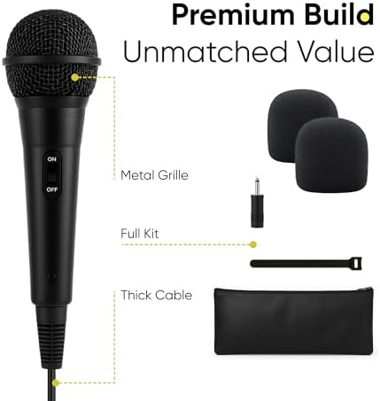 Bowens Wired Dynamic Microphone - Vocal Mic with 15ft Cable and 1\/4-Inch to 3.5mm Adapter, Cardioid Karaoke Microphone for Singing, DJ, PA System, Podcasting, Public Speaking Microfono