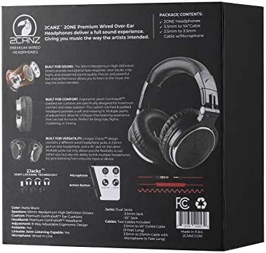 2CANZ Over-Ear Professional Wired DJ Headphones - 50mm Neodymium Drivers, Closed Back, Plush Comfrasoft Ear Cushions, 8-Way Adjustable Earpads, Foldable, and Joint Listening
