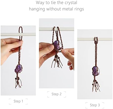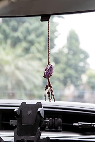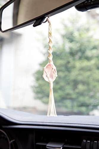 Dahey Macrame Crystal Car Charms Handmade Crystal Rear View Mirrior Car Ornament Boho Hanging Crystal, Waxed Rope Wrapped Crystal Hanging for Car Home Decor,Set of 2 Color