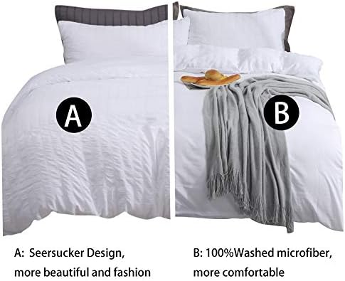 AveLom White Duvet Cover Queen (90 x 90 Inches), 3 Pieces (1 Duvet Cover + 2 Pillow Cases) Stripe Zipper Closure Corner Ties Soft Washed Microfiber Duvet Cover for Men, Women