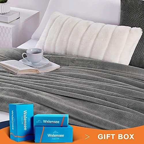 Walensee Grey Fleece Blanket Plush Throw Fuzzy Lightweight (Throw Size 50x60 Grey) Super Soft Microfiber Gray Flannel Blankets for Couch, Bed, Sofa Ultra Luxurious Warm and Cozy for All Seasons