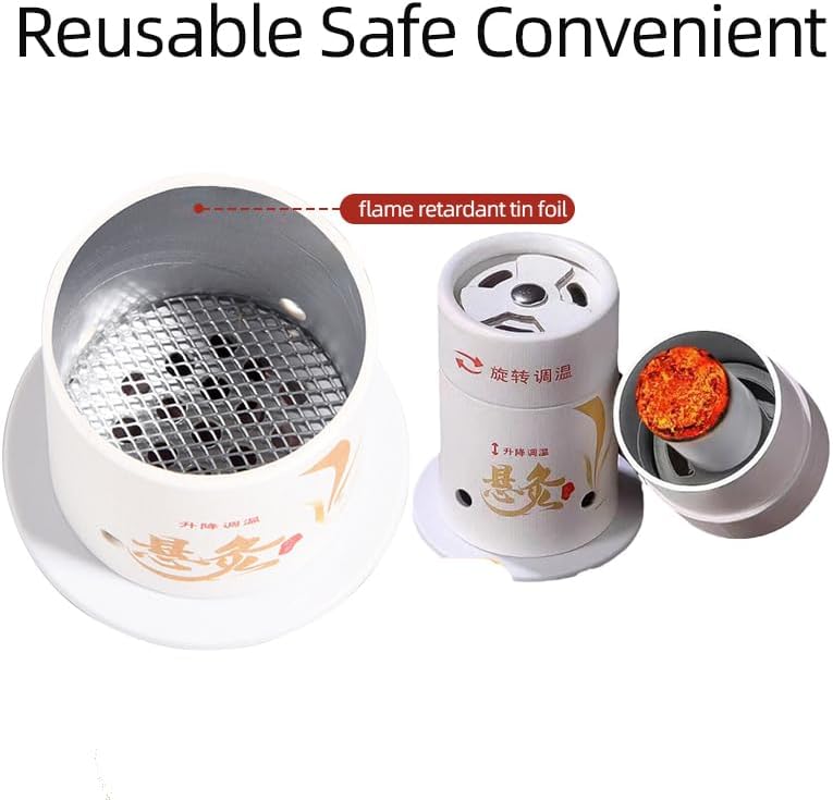 Moxibustion Box Kit - 4 Paper Moxa Box 艾灸盒 (Flame-Resistant Inner Lining) with 60 Stickers, 4 Adjustable Straps & 4 Heat Shields